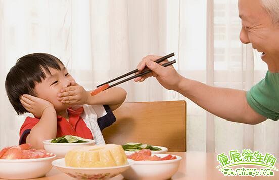 忌骂食:吃饭时以孩子训斥,甚至打骂,是最不符合生理、心理卫生要求的。人的生理机制是受大脑支配的,父母的训斥,必然会使孩子心情郁闷,导致肠、胃活动和消化腺体的分泌受到抑制,从而引起消化不良和吸收不好。