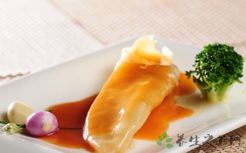 2、高血脂的人不宜吃太多鱼胶,因为鱼胶不仅含有丰富的胶原蛋白,同时也含有高胆固醇,所以量要控制得非常少,大概每次不超出10克,吃的周期,1个月不要多于2次。