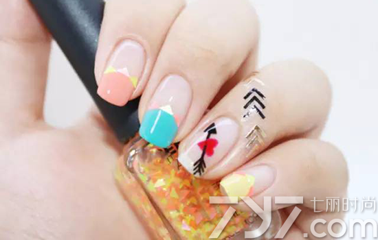 丘比特最出名的就是他的丘比特之箭了,穿心而过的丘比特之箭搭配活力青春的反法式美甲,更是活力十足。