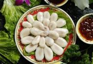 墨鱼蛋为日照独有的海珍品,历史悠久,驰名海内外,相传为封建帝王御膳佳品。系由日照特产金乌贼的卵巢加工而成,其色乳白,状如卵,经厨师之手,可加工成状若花瓣、薄如纸片的高级